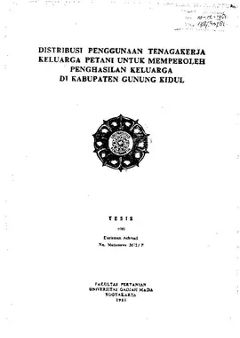 Distribusi Penggunaan Tenaga Kerja Keluarga Petani Untuk Memperoleh Penghasilan Keluarga Di Kabupaten Gunung Kidul Darisman Achmad Fakultas Pertanian UGM Konten Lokal Konten Lokal 31048