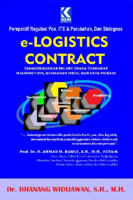 Buku ini merupakan deskripsi pemahaman yang lebih luas tentang ruang lingkup bisnis jasa logistik berkaitan dengan pemanfaatan bidang bidang telematika telekomunikasi media dan informatika terutama dalam penyelenggaraan electronic Logistics e Logistics Dalam pelaksanaan e Logistics penerapan secured connection andal aman bertanggung jawab dan sebagaimana mestinya trustworthy terpercaya dan efisien dapat meminimalkan berbagai potensi dan risiko terjadinya malfunction dalam sistem elektronik Buku ini memiliki moment of truth karena bersamaan dengan Paket Kebijakan Ekonomi PKE XIV 10 November 2016 yang men drive terwujudnya Digital Economy Sejalan dengan itu Kementerian Komunikasi dan Informatika dalam Road Map e Commerce Indonesia 2016 merujuk 7 tujuh isu penting bagi kemajuan industri e Commerce Tiga 3 dari 7 tujuh isu penting tersebut adalah logistik keamanan siber dan perlindungan konsumen sebagaimana dikaji dalam buku ini