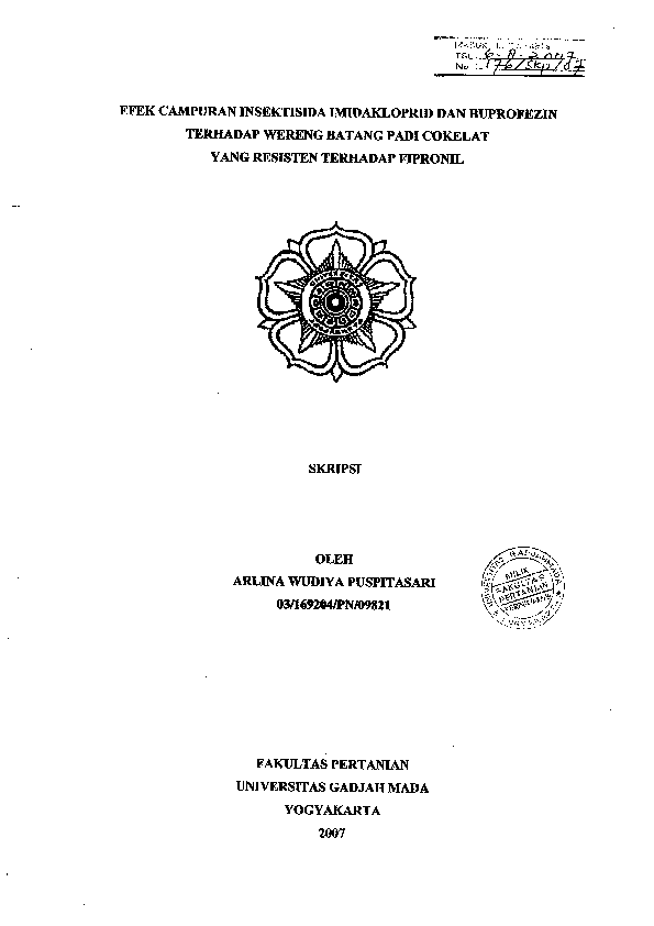 Efek Campuran Insektisida Imidakloprid Dan Buprofezin Terhadap Wereng Batang Padi Cokelat Yang Resisten Terhadap Fipronil Arlina Wudiya Puspitasari Fakultas Pertanian UGM Konten Lokal Konten Lokal 49204