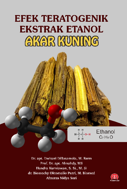 Teratogenik adalah suatu kejadian yang menyebabkan formasi dari suatu jaringan sel dan juga organ yang dihasilkan dari perubahan biokimia dan fisiologi Adanya teratogen dapat disebabkan oleh teratogenik ini Teratogen merupakan suatu zat yang dapat menyebabkan perubahan fungsi dan bentuk organ dalam perkembangan janin dalam masa kehamilan Senyawa teratogen ini dapat menjadi teratogenik pada suatu organisme bila diberikan pada saat proses organogenesis Akar kuning Coscinium fenestratum Gaertn Colebr merupakan tumbuhan dari famili Menispermaceae Akar kuning merupakan tumbuhan liana panjang mencapai 20 meter Batang akar kuning memiliki beberapa senyawa bioaktif yaitu alkaloid saponin dan terpenoid Penelitian ini bertujuan untuk mengetahui apakah ekstrak etanol batang akar kuning memiliki efek teratogen terhadap mencit selama kehamilan