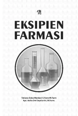 Pada buku EKSIPIEN FARMASI ini terdiri dari 5 bab Matakuliah menyajikan materi yang berisi eksipien dalam sediaan padat seperti contoh sifat glidan bahan pelicin bahan penghancur dan lain lain eksipien dalam sediian cair eksipien dalam sediaan semi solid dan eksipien pendukung yang berisimateri pokok seperti aktioksidan zat pewarna zat pemanis yang umumnya digunakan dalam sediaan farmasi baik obat maupun sediaan kosmetika