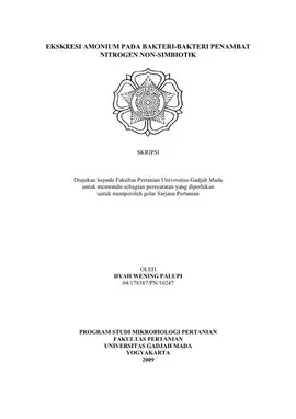 Ekskresi Amonium Pada Bakteri-Bakteri Penambat Nitrogen Non-Simbiotik Dyah Wening Palupi Fakultas Pertanian UGM Konten Lokal Konten Lokal 31200
