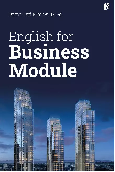 Sinopsis Buku: Buku *English for Business Module* ini merupakan buku pelajaran yang dirancang untuk membantu mahasiswa program studi Bisnis dan mahasiswa dari berbagai disiplin ilmu yang ingin mempelajari Bahasa Inggris khususnya dalam konteks dunia bisnis. Buku ini juga sangat bermanfaat bagi mereka yang ingin melamar pekerjaan yang memerlukan Bahasa Inggris sebagai media komunikasi. Buku ini menyediakan berbagai aktivitas yang dirancang untuk meningkatkan kemampuan empat keterampilan Bahasa Inggris, yaitu mendengar, berbicara, membaca, dan menulis. Buku ini terdiri dari berbagai bab yang membahas topik-topik penting dalam dunia bisnis, mulai dari pembuatan pengenalan diri di tempat kerja, hingga keterampilan dasar tenses dalam Bahasa Inggris. Selain itu, buku ini juga melatih siswa untuk menulis paragraf singkat tentang pekerjaan impian mereka. Buku ini dilengkapi dengan latihan soal praktek yang membantu siswa untuk menguasai materi yang telah dipelajari. Dengan struktur yang jelas dan materi yang relevan, *English for Business Module* menjadi panduan yang komprehensif dalam pembelajaran Bahasa Inggris untuk dunia bisnis. Buku ini telah diterbitkan oleh Bintang Pustaka Madani Yogyakarta dan diterbitkan pertama kali pada bulan Februari 2021. ISBN: 978-623-6143-32-2.