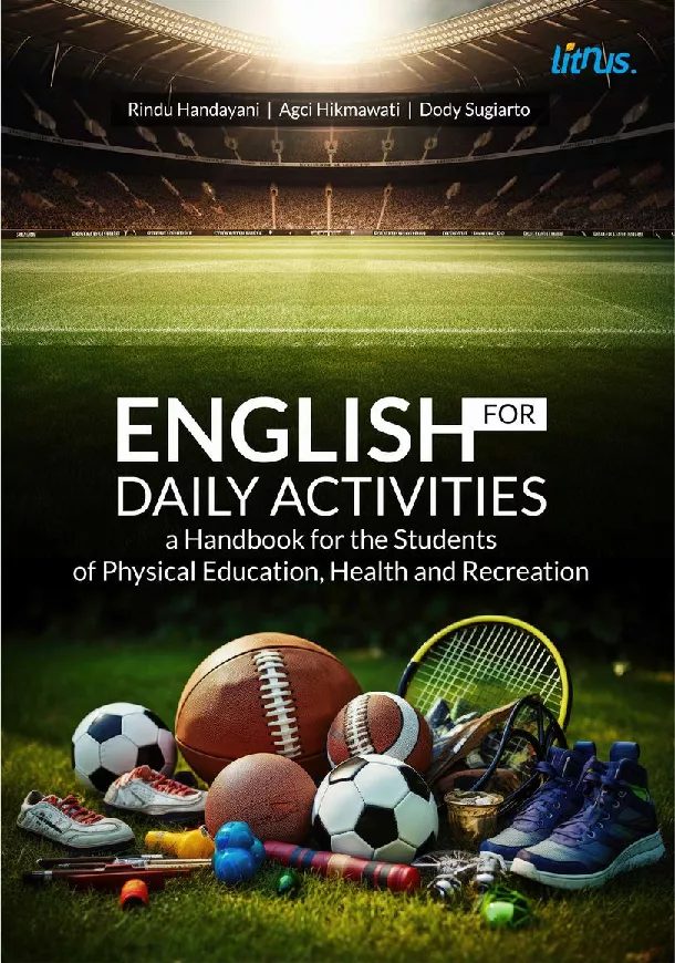 Tujuan dari penulisan bahan ajar ini adalah untuk membantu mahasiswa Universitas Muhammadiyah Bangka Belitung khususnya program studi Pendidikan Jasmani Kesehatan dan Rekreasi dalam mata kuliah bahasa Inggris Terdapat tiga bab pada bahan ajar ini yang masing masing babnya membahas tiga skill bahasa Inggris yakni reading writing dan speaking untuk membantu mahasiswa memahami bermacam macam teks percakapan dan cara penulisan dalam bahasa Inggris