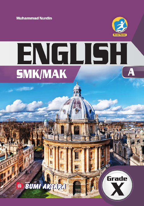 Buku Bahasa Inggris ini ditulis sebagai salah satu sumber belajar siswa SMK MAK kelas X untuk mempelajari dan memperdalam materi Bahasa Inggris Buku ini disusun berdasarkan Peraturan Direktur Jenderal Pendidikan Dasar dan Menengah Kementerian Pendidikan dan Kebudayaan Nomor 464 D D5 KR 2018 tentang Kompetensi Inti dan Kompetensi Dasar Mata Pelajaran Muatan Nasional A Muatan Kewilayahan B Dasar Bidang Keahlian C1 Dasar Program Keahlian C2 dan Kompetensi Keahlian C3 Selain itu buku ini ditulis secara umum dalam rangka ikut serta mencerdaskan bangsa Indonesia menjelang era globalisasi dalam perkembangan ilmu pengetahuan dan teknologi Anda dapat mempelajari buku ini sebelum dan sesudah dibahas oleh guru dan dapat mendiskusikannya dengan teman agar mendapatkan hasil belajar yang maksimal Setiap chapter dalam buku ini dilengkapi dengan Kompetensi Dasar Keywords Content Map Task Info Summary Self Reflection Competency Test dan Project Soal latihan diberikan beberapa jenis setelah akhir bab dan setiap akhir semester Pembahasan materi disajikan dengan bahasa yang lugas dan mudah Anda pahami dari pembahasan secara umum ke pembahasan secara khusus Sebelum membaca rangkuman materi diharapkan Anda membuat rangkuman sendiri terlebih dahulu yang nantinya dibandingkan dengan rangkuman dalam buku Dengan demikian Anda dapat membandingkan pokok materi yang dianggap penting untuk dirangkum dan meningkatkan pemahaman Anda Pada akhir buku juga dilengkapi dengan Glossary dan Index