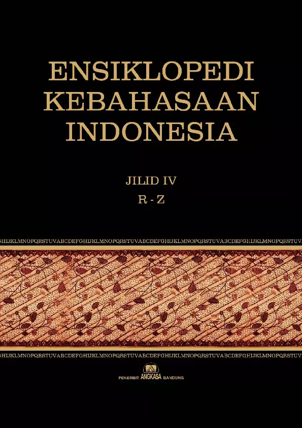 Sinopsis Buku Ensiklopedi Kebahasaan Indonesia (EKI) Jilid IV (R-Z) Ensiklopedi Kebahasaan Indonesia (EKI) Jilid IV (R-Z) adalah bagian dari ensiklopedia kebahasaan Indonesia yang terbit dalam empat jilid, dengan jilid ini menyajikan entri-entri yang dimulai dari huruf R hingga Z. Buku ini merupakan hasil kerja sama dan pengabdian para ahli kebahasaan, penyusun buku-buku istilah kebahasaan, tatabahasa, kajian dan penelitian bahasa, kamus-kamus kebahasaan, serta ensiklopedi kebahasaan lainnya. EKI dibuat sebagai upaya untuk menyediakan wadah yang dapat membantu pembaca dalam memperoleh, mengetahui, mempelajari, dan memahami berbagai hal yang berkaitan dengan dunia kebahasaan bahasa Indonesia secara lebih utuh dan komprehensif. Dalam jilid ini, EKI mencakup berbagai konsep, teori, tokoh-tokoh kebahasaan, karya-karya kebahasaan, dan istilah-istilah kebahasaan yang merujuk pada kasus-kasus kebahasaan Indonesia. Buku ini juga memuat pendokumentasian berbagai persoalan kebahasaan Indonesia, termasuk aspek-aspek seperti pragmatik, pengajaran kompetensi bahasa, pengajaran pemerolehan bahasa, serta aspek dasar seperti membaca, menulis, berbicara, dan menyimak. EKI juga berupaya memperluas wawasan dan memperkaya khazanah kebahasaan Indonesia, sekaligus menjadi pemacu penggunaan Bahasa Indonesia di kalangan masyarakat luas. Dengan hadirnya EKI, harapan redaksi adalah agar buku ini dapat menjadi referensi yang bermanfaat bagi masyarakat, khususnya generasi muda, dalam mempelajari dan mendalami bahasa Indonesia sebagai identitas kebangsaan. Meskipun masih terdapat beberapa kekurangan yang akan terus diperbaiki dalam terbitan dan cetakan berikutnya, EKI tetap diharapkan dapat menjadi salah satu sarana penting dalam pengembangan dan penguasaan bahasa Indonesia.