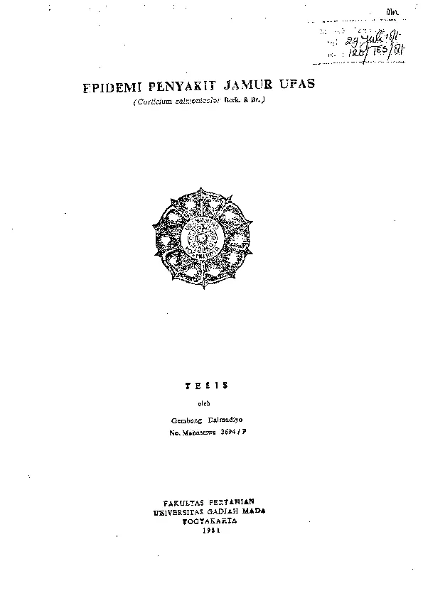 Epidemi Penyakit Jamur Upas (Corticium Salmonicolor Berk. & Br) Gembong Dalmadiyo Fakultas Pertanian UGM Konten Lokal Konten Lokal 31374