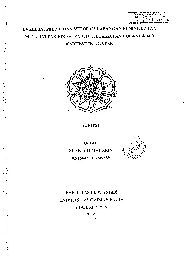 Evaluasi Pelatihan Sekolah Lapangan Peningkatan Mutu Intensifikasi Padi Di Kecamatan Polanharjo Kabupaten Klaten Zuan Ari Mauzein Fakultas Pertanian UGM Konten Lokal Konten Lokal 48816