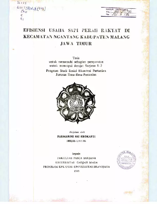 Evisiensi Usaha Sapi Perah Rakyat Di Kecamatan Ngatang Kabupaten Malang Jawa Timur Prmarini Sri Ekokapti Fakultas Pertanian UGM Konten Lokal Konten Lokal 31090