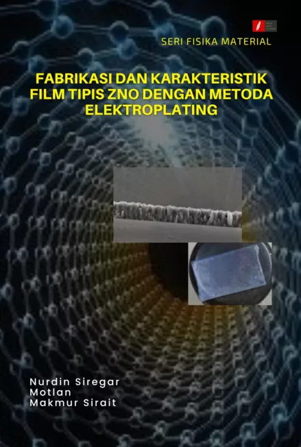 Film tipis adalah suatu lapisan yang sangat tipis dari bahan organik anorganik metal maupun campuran metal organik yang dapat memiliki sifat sifat konduktor semikonduktor maupun isolator Teknologi film tipis seng oksida ZnO akhir akhir ini telah banyak dikaji dan mengalami perkembangan yang sangat pesat baik dari cara pembuatan bahan yang digunakan dan aplikasinya dalam kehidupan masyarakat seperti perangkat pemancar cahaya sel surya sensor gas panel layar datar dll Aplikasi ini didasarkan karena menariknya karakteristik ZnO seperti lebar celah pita energi optik langsung transisi dll Film tipis ZnO dapat difabrikasi dengan berbagai metode antara lain seperti molecular beam epitaxy RF magnetron sputtering pulsed laser deposition spray pyrolysis chemical bath deposition physical vapor deposition dan sol gel dip coating sol gel spin coating dan elektroplating Metode electroplating merupakan suatu proses pelapisan menggunakan prinsip pengendapan logam dengan cara elektrokimia benda kerja akan dilapisi dijadikan katoda sedangkan logam yang melapisi benda kerja dijadikan sebagai anoda dengan cara kedua elektroda berada dalam larutan elektrolit dan dihubungkan dengan catu daya arus searah DC power supply Fabrikasi film tipis ZnO dengan metode elektroplating dilakukan karena mempunyai keuntungan antara lain suhu sintesis rendah dan peralatan sederhana dan murah tidak menggunakan ruang dengan kevakuman komposisinya homogen ketebalan lapisan bisa dikontrol dan struktur mikronya cukup baik Untuk memperoleh film tipis ZnO yang mempunyai sifat optik dan sifat listrik yang paling optimal sebagai fhotoanoda Dye Sensitized Solar Cells DSSC difabrikasi dengan metode elektroplating dengan variasi konsentrasi larutan arus deposisi dan waktu deposisi Untuk memperoleh sifat optik dan sifat listrik film tipis ZnO yang paling optimal dikarakterisasi dengan X ray Diffraction XRD Scanning Electron Microscope SEM EDS UV Vis Spektrofotometer PL Photoluminescene X ray photoelectron spectroscopy XPS Raman Spectroscopy dan uji kistrik Buku ini sangat menarik dan dapat memberikan sumbangsi yang berarti pada dosen peneliti dan mahasiswa dalam bidang film tipis ZnO dan sejenisnya