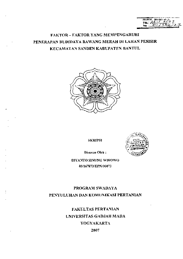 Faktor-Faktor Yang Mempengaruhi Penerapan Budidaya Bawang Merah Di Lahan Pesisir Kecamatan Sanden Kabupaten Bantul Biyanto Sinung Wibowo Fakultas Pertanian UGM Konten Lokal Konten Lokal 48850