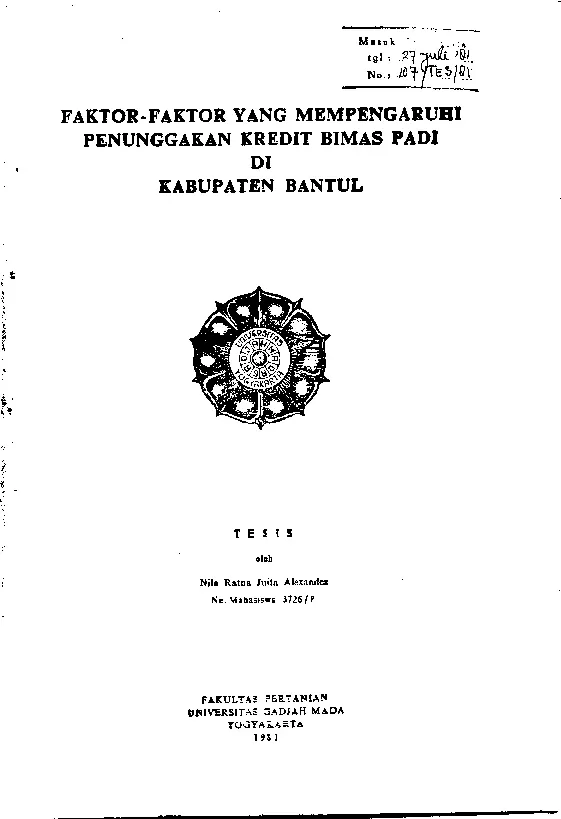 Faktor-Faktor Yang Mempengaruhi Penunggakan Kredit Bimas Padi Di Kabupaten Bantul Nila Ratna Juita Alexander Fakultas Pertanian UGM Konten Lokal Konten Lokal 31386