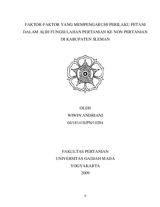 Faktor-Faktor Yang Mempengaruhi Perilaku Petani Dalam Alih Fungsi Lahan Pertanian Ke Non Pertanian Di Kabupaten Sleman Wiwin Andriani Fakultas Pertanian UGM Konten Lokal Konten Lokal 31329