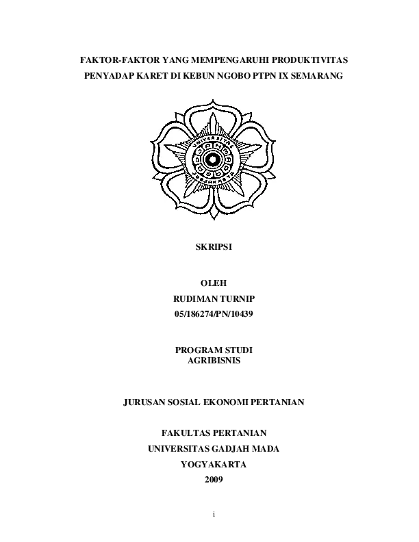 Faktor-Faktor Yang Mempengaruhi Produktivitas Penyadap Karet Di Kebun Ngobo Ptpn Ix Semarang Rudiman Turnip Fakultas Pertanian UGM Konten Lokal Konten Lokal 31297