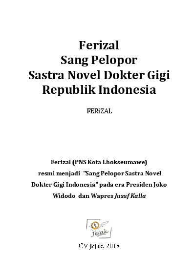 Sinopsis Buku: Buku ini adalah karya sastra yang unik dan inovatif, menggabungkan dunia fiksi dengan dunia nyata dalam bidang kedokteran gigi. Dalam buku ini, penulis Ferizal menghadirkan kisah-kisah yang menginspirasi, yang dibangun dari imajinasi tetapi tetap relevan dengan realitas profesional dalam bidang kedokteran gigi. Buku ini tidak hanya menjadi cerita yang menarik, tetapi juga menjadi sarana untuk mengkomunikasikan pesan-pesan penting dalam bidang kedokteran gigi, termasuk etika, dedikasi, dan kecintaan terhadap profesi. Buku ini juga menggambarkan peran penting dari Puskesmas Muara Satu dalam proses akreditasi, yang menjadi bagian dari upaya untuk meningkatkan kualitas pelayanan kesehatan masyarakat. Dengan integrasi antara sastra dan pendidikan kesehatan, buku ini menjadi bukti nyata bahwa karya sastra dapat menjadi alat pendidikan dan pengembangan profesional yang efektif. Selain itu, buku ini juga menjadi penghargaan dan pengakuan terhadap Adinda Drg. Fadhlina Irham, Sp.Ort, yang menjadi inspirasi dan motivasi bagi penulis dalam menulis karya-karya sastra yang berkualitas. Buku ini tidak hanya menjadi mahakarya sastra, tetapi juga menjadi bentuk penghargaan terhadap dedikasi dan kerja keras dalam bidang kedokteran gigi.