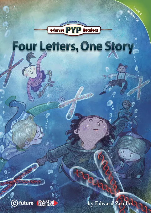 Because the title Four Letters One Story intrigues the children they choose this adventure as their last one at Edventureland They are astonished to learn that the story is contained in forty six books but composed of only four letters When they receive the instructions for the adventure and discover they must read all forty six books and summarize them in a single word they have second thoughts But when the library turns out to be a double helix roller coaster the children make their greatest discovery yet they are the story written with four letters Translate Karena judul Empat Huruf Satu Cerita membuat anak anak penasaran mereka memilih petualangan ini sebagai petualangan terakhir mereka di Edventureland Mereka tercengang saat mengetahui bahwa cerita tersebut terdapat dalam empat puluh enam buku namun hanya terdiri dari empat huruf Ketika mereka menerima instruksi untuk petualangan tersebut dan mendapati bahwa mereka harus membaca keempat puluh enam buku dan merangkumnya dalam satu kata mereka berubah pikiran Namun ketika perpustakaan berubah menjadi roller coaster heliks ganda anak anak mendapatkan penemuan terbesarnya itu adalah cerita yang ditulis dengan empat huruf