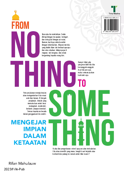 Allah SWT memberi setiap orang waktu kesempatan serta akal dan kelebihan lainnya Namun sudah sampai manakah kita gunakan pemberian itu Sudah sampai manakah kita memanfaatkan semua kelebihan itu untuk banyak orang At least untuk mencapai impian kita pribadi Sering kali kita kufur padahal Allah SWT baik banget memberi kita kesempurnaan Kita malas buang buang waktu mudah goyah putus asa tidak sabaran dan suka maksiat Ketahuilah ada banyak hal yang harus kita lakukan untuk menyempurnakan tugas kita sebagai hamba dalam waktu yang singkat ini Buku ini mengajak kita untuk menjadi manusia yang mempunyai kesadaran akan setiap potensi diri mau mengejar cita cita memaksimalkan setiap kelebihan dan yang paling penting adalah tidak mengesampingkan Allah SWT dalam setiap proses untuk menggapainya Segera temukan rahasianya Selamat membaca