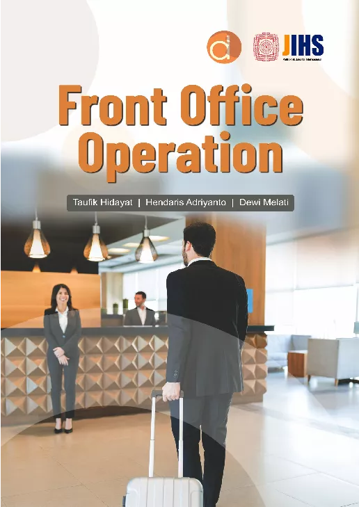 Buku kategori perhotelan berjudul Front Office Operation merupakan karya Taufik Hidayat Hendaris Adriyanto dan Dewi Melati Buku ini adalah panduan lengkap yang mengulas berbagai aspek penting dari operasi front office dalam industri perhotelan Buku ini memberikan pemahaman mendalam tentang peran dan tanggung jawab front office sebagai bagian yang penting dalam menciptakan pengalaman tamu yang menyenangkan dan efisien