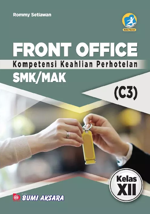 Sinopsis Buku: Buku ini merupakan panduan komprehensif dalam mempelajari bidang keahlian Front Office dalam dunia perhotelan, khususnya untuk siswa SMK/MAK Kelas XII. Buku ini disusun berdasarkan Kurikulum 2013 yang dirancang untuk memperkuat kompetensi siswa di bidang pengetahuan, keterampilan, dan sikap secara utuh. Buku ini mencakup berbagai kompetensi inti dan kompetensi dasar yang terkait dengan tugas dan tanggung jawab dalam layanan front office, termasuk penanganan reservasi, check in, check out, transaksi keuangan, serta layanan bell desk. Selain itu, buku ini juga menjelaskan perbedaan tugas dan struktur organisasi antara hotel besar dan hotel kecil, serta pentingnya keterampilan kepribadian dan grooming dalam memberikan layanan yang profesional. Buku ini ditujukan untuk membekali siswa dengan pengetahuan dan keterampilan yang relevan untuk menghadapi dunia kerja di bidang perhotelan, serta memfasilitasi pembelajaran yang aktif, kreatif, dan produktif.