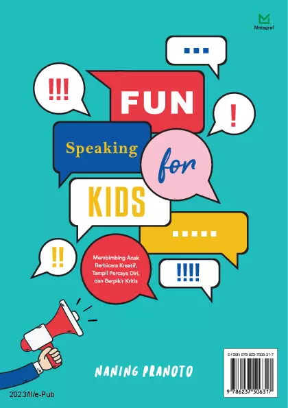 Buku Fun Speaking for Kids Membimbing Anak Berbicara Kreatif Tampil Percaya Diri dan Berpikir Kritis hadir untuk menemani menemani orang tua dalam membersamai anak meningkatkan potensi public speaking nya Panduan panduan ringkas dan contoh dongeng dalam buku ini diharapkan mampu menumbuhkan semangat orang tua dalam membimbing anak berbicara kreatif tampil percaya diri dan mampu berpikir kritis