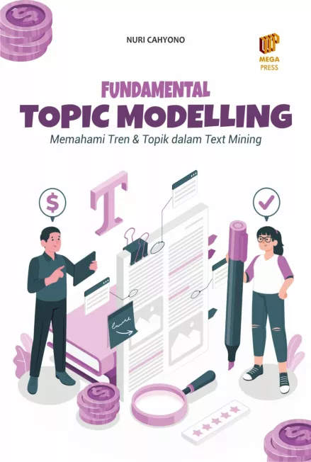 Buku Fundamental Topic Modelling Memahami Pola dan Topik dalam Penambangan Teks ini menyajikan panduan lengkap mengenai konsep teori dan penerapan topic modelling dalam analisis data teks yang tidak terstruktur Dalam era big data yang semakin berkembang kemampuan untuk menganalisis dan mengidentifikasi tema tersembunyi dari kumpulan besar teks menjadi semakin penting terutama untuk riset akademis analisis media sosial dan kebutuhan bisnis Buku ini dimulai dengan penjelasan dasar mengenai topic modelling dan perkembangannya diikuti dengan pengenalan algoritma utama seperti Latent Dirichlet Allocation LDA Latent Semantic Indexing LSI dan teknik lainnya Melalui pendekatan yang sistematis pembaca diajak untuk memahami bagaimana metode metode ini bekerja dari tahap pra pemrosesan data hingga evaluasi model
