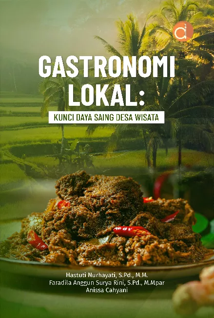 Buku kategori gastronomi berjudul Gastronomi Lokal Kunci Daya Saing Desa Wisata merupakan karya Hastuti Nurhayati Faradila Anggun Surya Rini dan Anissa Cahyani Buku ini menguraikan konsep potensi gastronomi dan perkembangan wisata gastronomi Pariwisata gastronomi lekat kaitannya dengan desa wisata Namun hingga saat ini gastronomi di daerah desa wisata masih mengalami berbagai kendala untuk berkembang Dengan memahami potensi dan permasalahan spesifik dari wisata gastronomi diharapkan pembahasan dalam buku ini dapat menjadi acuan untuk mengembangkan wisata gastronomi secara berkelanjutan