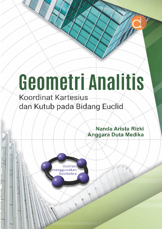 E book tentang geometri analitis yang berjudul Geometri Analitis Koordinat Kartesius dan Kutub Pada Bidang Euclid merupakan karya Nanda Arista Rizki Anggara Duta Medika Target pembaca e book ini adalah mahasiswa yang sedang mempelajari mata kuliah geometri atau struktur pola alam secara geometris mereka yang antusias dengan matematika dan pembaca umum yang tertarik dengan materi ini E bookini sebagian besar ditulis menggunakan LaTeX Selain mengasah keterampilan pemrograman Tim Penulis mengapresiasi bahasa matematika lebih nyaman dan menarik saat ditulis menggunakan LaTeX Semua gambar yang dibuat menggunakan GeoGebra pun disisipi teks berformat LaTeX sehingga gambar yang dihasilkan dirasa nyaman oleh Tim Penulis Kesamaan kegemaran Tim Penulis dalam menggunakan LaTeX ini juga menjadi salah satu pemicu untuk bersinergi dan berkarya melalui buku