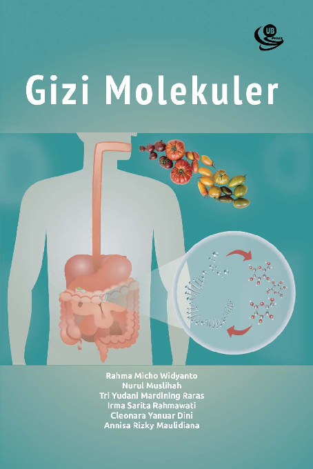 Gizi Molekuler merupakan cabang ilmu yang mempelajari tentang interaksi antara zat gizi dan berbagai molekul intraseluler dan ekstraseluler Cabang ilmu ini muncul sebagai bidang baru dalam ilmu zat gizi dan merupakan salah satu bidang yang berkembang paling pesat bersamaan dengan kemajuan dalam dunia Biologi Molekuler yang dengan lebih nyata mampu menjelaskan respons organisme terhadap zat gizi pada tingkat molekuler di antaranya ekspresi gen sinyal transduksi dan juga modifikasi protein Terdapat 14 Bab dalam buku ini Pada Bab 1 diuraikan mengenai Pengantar Gizi Molekuler yang berisi penjelasan pengertian Gizi Molekuler variasi genetik terkait diet beserta contoh kasus evolusi variasi genetik terkait dengan diet yaitu fenomena intoleransi laktosa dan evolusi warna kulit manusia Dua fenomena tersebut cukup menggambarkan bagaimana diet seseorang memengaruhi ke level genomik sehingga berefek pada fenotipik seseorang Bab 2 dan 3 membahas mengenai konsep Nukleus Gen dan Genom serta kerusakan DNA mutasi dan konsep variasi polimorfisme genetik terkait dengan diet Bab 4 berisi pengaruh diet terhadap mekanisme biologi setuler seperti proliferasi dan apoptosis Bab 5 berisi pembahasan nutrigenomik metabolomik dan personal nutrition terkait penyakit dan terapinya Bab 6 berisi pembahasan metode yang secara umum dilakukan dalam penelitian di bidang Gizi Molekuler di antaranya PCR SDS PAGE Gel Elektroforesis dan ELISA Selanjutnya pada Bab 7 membahas mengenai proses fisiologi dan biokimia dari zat gizi makro terkait dengan penyakit yang dikaji dalam perspektif molekuler Bab 8 lebih berfokus pada pembahasan pangan fungsional untuk terapi gizi dan pencegahan penyakit yang dikaji dalam pendekatan Biologi Molekuler Bab 9 secara spesifik membahas mikrobiota usus terkait dengan diet dan kesehatan dikaji dari sudut pandang Biologi Molekuler Bab 10 dibahas mengenai kaitan kanker dan diet dalam perspektif molekuler Bab 11 dan 12 berisi pembahasan spesifik penyakit Diabetes Melitus dan Obesitas kaitannya dengan diet dikaji dalam sudut pandang molekuler Bab 13 membahas mengenai pangan fermentasi beserta contoh kasus ditinjau dari kajian Gizi Molekuler dan Bab 14 berisikan bahasan fetal programming dan Penyakit Tidak Menular disertai contoh kasus dalam ranah kajian Gizi Molekuler Diharapkan pembahasan dalam Buku Gizi Molekuler ini dapat membantu memudahkan mahasiswa Jurusan Gizi dalam menjawab pertanyaan mendasar tentang hubungan keterkaitan antara diet dengan kesehatan atau penyakit yang diakibatkan pada tingkat yang paling mendasar yaitu level molekuler