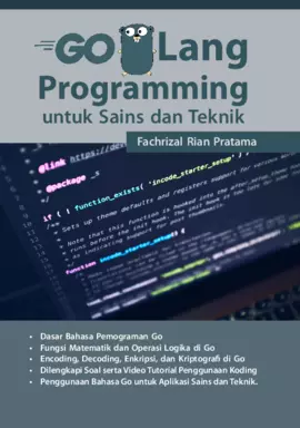 Sinopsis Buku: Buku *GoLang Programming untuk Sains dan Teknik* ini merupakan panduan praktis bagi pemula dan pengembang yang ingin mempelajari bahasa pemrograman Go (Golang) dengan fokus pada penerapan di bidang sains dan teknik. Buku ini disusun secara terstruktur dan komprehensif, membimbing pembaca dari dasar-dasar pemrograman Go hingga konsep lanjutan seperti concurrency, packages, dan pengelolaan error serta logging. Selain itu, buku ini juga mengeksplorasi topik penting seperti hashing, kriptografi, dan encoding yang relevan dalam pengembangan teknologi modern. Dalam buku ini, pembaca akan mempelajari cara memulai instalasi Go, memahami sintaks dasar, mengelola variabel, fungsi, dan struktur data seperti maps. Selanjutnya, buku ini juga membahas konsep seperti goroutines, channels, dan sinkronisasi untuk pengembangan program yang efisien dan paralel. Buku ini juga menyediakan penjelasan mengenai pembuatan packages, serta penerapan dalam praktik nyata seperti pembacaan dan penulisan file, serta penggunaan berbagai format encoding seperti JSON, XML, dan CSV. Dengan pendekatan yang jelas dan mudah dipahami, buku ini menjadi referensi yang sangat bermanfaat bagi mahasiswa, akademisi, dan profesional yang ingin menguasai bahasa Go untuk aplikasi sains dan teknik. Buku ini juga dilengkapi dengan latihan dan rangkuman untuk memperkuat pemahaman pembaca.