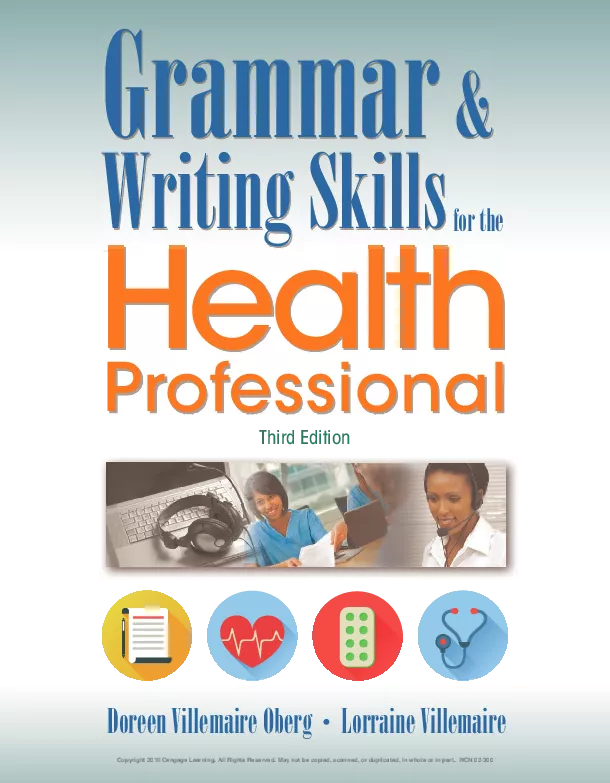 Extremely student friendly GRAMMAR WRITING SKILLS FOR THE HEALTH PROFESSIONAL 3e focuses on the fundamentals of grammar and writing to help you develop the skills to communicate clearly and effectively in real world practice An indispensable resource the can be used during your schooling as well as you when enter your career the text is divided into three modules The first focuses on basic grammar nouns pronouns verbs and the second on more advanced topics sentences and paragraphs The third module helps you develop writing skills for medical reports correspondence emails office meeting minutes progress notes charting research and brochures The text s unique writing process can also be used for cover letters and resumes In addition the text includes current information on HIPAA the Joint Commission American Health Management Information Association and much more while real world applications at the end of every section illustrate how chapter concepts relate to your future career