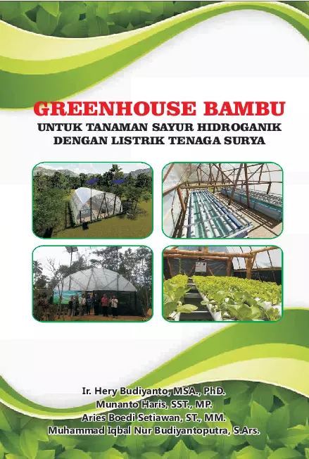 DAFTAR ISI KATA PENGANTAR DAFTAR ISI iii iv Bab I Pendahuluan Bab II Kajian Literatur 2 1 Ketahanan Pangan 2 2 Sentra Pertanian Perkotaan Urban Farming 2 3 Greenhouse 2 4 Pertanian Hidroganik 2 5 Pembangkit Listrik Tenaga Surya Bab III Desain 3 1 Desain Skematik Sistem Greenhouse Hidroganik 3 2 Desain Greenhouse 3 3 Desain Bracket Energi Surya BAB IV APLIKASI BANGUNAN GREENHOUSE BAMBU UNTUK TANAMAN SAYUR HIDROGANIK DENGAN LISTRIK TENAGA SURYA 4 1 Pembangunan 4 2 Sosialisasi dan Koordinasi BAB V PENGUJIAN 5 1 Uji Perbedaan Temperatur 5 2 Pengujian Energi Surya Fotovoltaik BAB VI KESIMPULAN 6 1Kesimpulan 6 2 Rekomendasi DAFTAR PUSTAKA 1 3 3 4 5 25 32 43 43 44 48 IV 49 49 53 56 56 57 58 58 58 60