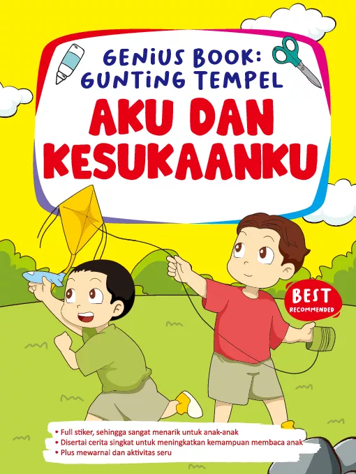 Aku dan Kesukaanku Salah satu yang menyenangkan bagi anak adalah bermain Nah dalam buku ini anak anak dapat bermain sambil belajar Buku ini mamberikan banyak hal seperti menggunting dan menempel didalamnya Dan disajikan dengan format stiker sehingga anak anak dengan leluasa untuk mengunting serta menempelkan pada bidang yang disajikan tak perlu lagi pakai lem Disertai juga cerita pendek yang memiliki pesan moral