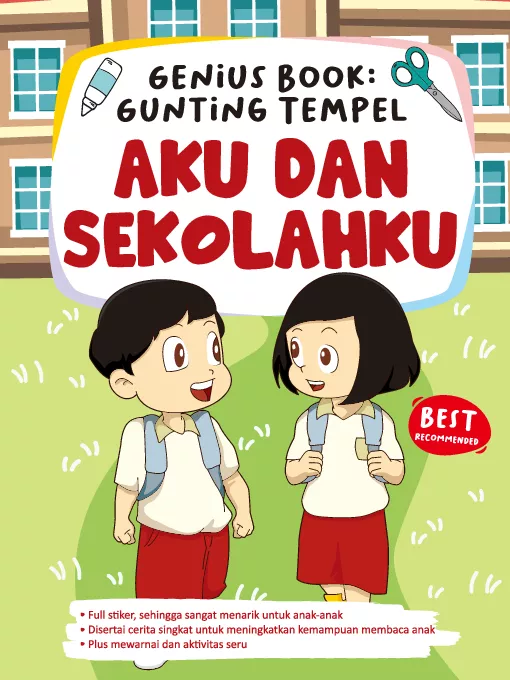 Aku dan Sekolahku Salah satu yang menyenangkan bagi anak adalah bermain Nah dalam buku ini anak anak dapat bermain sambil belajar Buku ini mamberikan banyak hal seperti menggunting dan menempel didalamnya Dan disajikan dengan format stiker sehingga anak anak dengan leluasa untuk mengunting serta menempelkan pada bidang yang disajikan tak perlu lagi pakai lem Disertai juga cerita pendek yang memiliki pesan moral