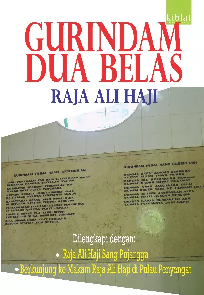 Raja Ali Haji banyak melahirkan karya besar yang tersebar dalam berbagai bidang seperti karya sastra keagamaan filsafat pemerintahan sampai kebahasaan Sebut saja karyanya yang terkenal Syair Siti Shianah Syair Awai dan Gurindam Dua Belas Di bidang sastra Melayu karyanya yang berjudul Hikayat Abdul Muluk 1846 dianggap sebagai karya sastrawan Riau yang pertama kali diterbitkan Karya karya Raja Ali Haji dikenal dengan kekhasannya yang selalu berakar pada syariat Islam dan juga tradisi Melayu Karya karyanya di bidang sastra sangat diperhitungkan di masanya yaitu pada abad ke 19 Buku ini memuat karya Raja Ali Haji yang paling terkemuka yaitu Gurindam Dua Belas yang berisi petuah dan nasihat yang tak lekang oleh zaman Dilengkapi pula dengan tinjauan mengenai hidup dan karya Raja Ali Haji reportase ke Pulau Penyengat Riau tempat Raja Ali Haji dimakamkan dan foto foto menarik mengenai pulau yang menjadi pusat Kerajaan Melayu itu