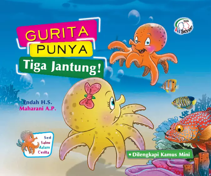 Gurita merupakan hewan yang cerdas Uniknya gurita mempunyai tiga jantung Banyak sekali jantungnya Untuk apa saja ya Gurita juga hewan unik Dari kepalanya muncul delapan lengan yang panjang Untuk menghindar dari musuh ia berani memotong tangannya Jika dipelihara di akuarium hewan laut ini sering kabur Lho kok bisa Kalian mesti membaca buku ini untuk menemukan jawabannya Sekaligus belajar bahasa Inggris lewat kamus mini yang ada di dalamnya