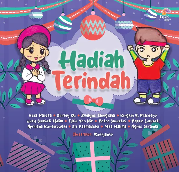 Mendapat hadiah dari orang lain tentu sangan menyenangkan Apalagi hadiah itu adalah hadiah istimewa dari orang orang yang kita sayangi Bahkan dalam waktu waktu tertentu biasanya kita mengharapkan mendapat hadiah seperti Natal Buku yang ditulis oleh dua belas orang yang mencintai dunia kanak kanak ini ingin berbagi hadiah untuk kita Semua hadiah yang dituangkan dalam bentuk cerita ini ingin mengajak kita belajar tentang kasih Kasih itu memberi tidak meminta Saat kita dapat memberikan sesuatu kepada orang lain itulah Hadiah Terindah bagi kita