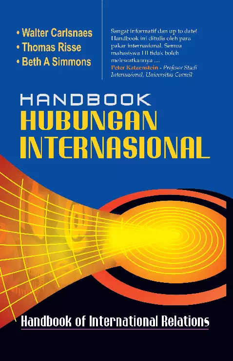 Sinopsis Buku: Buku ini adalah sebuah *Handbook of International Relations* yang dirancang sebagai panduan menyeluruh dan komprehensif bagi studi Hubungan Internasional (HI). Buku ini menggabungkan perspektif analitis dan teoritis yang mendalam, serta mencakup berbagai topik utama dan kontroversi yang menjadi ciri khas komunitas penelitian HI kontemporer. Dengan struktur yang terdiri dari tiga domain intelektual analitis, buku ini memberikan wawasan mengenai sejarah intelektual HI, serta telaah meta-teoritis dan teoritis yang mendukung pemahaman lebih luas tentang studi HI sebagai bidang ilmu yang internasional, bukan hanya sebagai ilmu sosial Amerika. Buku ini tidak hanya menyajikan kajian konseptual dasar, tetapi juga mengeksplorasi berbagai isu-isu penting dalam HI, termasuk perdebatan antara *rasionalisme* dan *konstruktivisme* sebagai dua pendekatan utama dalam pemikiran HI saat ini. Dengan 28 bab pembahasan yang panjang, buku ini memberikan panduan yang utuh dan terstruktur untuk memahami kompleksitas dan dinamika dalam hubungan internasional, serta peran normatif dan normatif dalam membangun penelitian HI sebagai disiplin ilmu yang independen dan internasional.