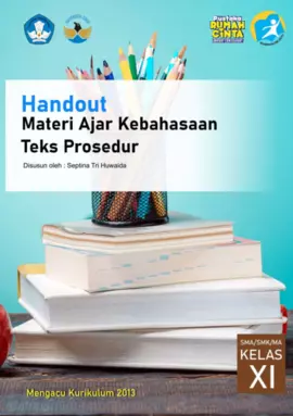 Penyusunan materi ajar ini mengacu silabus kurikulum 2013 SMA kelas XI yaitu KD 3 2 menganalisis struktur dan kebahasaan teks prosedur dan 4 2 mengembangkan teks prosedur dengan memperhatikan hasil analisis terhadap struktur kebahasaan dan isi Kita telah mengetahui bahwa teks prosedur merupakan sebuah teks yang berisi tentang langkah langkah atau tips dalam melakukan sesuatu Di dalam pembelajaran teks prosedur kebanyakan hanya mengenal kebahasaan yang mengacu buku teks Bahasa Indonesia terutama kelas XI edisi revisi 2017 Buku teks tersebut memuat aspek kebahasaan teks prosedur berupa kalimat imperatif yang ditandai dengan akhiran kan i dan lah serta adanya penggunaan pernyataan persuasif bujukan atau ajakan Teks prosedur tidak hanya memuat hal tersebut tetapi juga dapat mengandung kalimat kalimat saran dan larangan terutama yang berisi tips tips membuat atau melakukan sesuatu Unsur kebahasaan berupa kalimat kalimat yang telah disebutkan merupakan sebuah representasi atau wujud dari tindak tutur direktif Guru dapat menjadikan handout ini sebagai pendamping buku teks dan referensi ketika memberikan materi kebahasaan dalam pembelajaran teks prosedur Siswa juga akan memperoleh wawasan baru mengenai tindak tutur direktif dalam pembelajaran teks prosedur