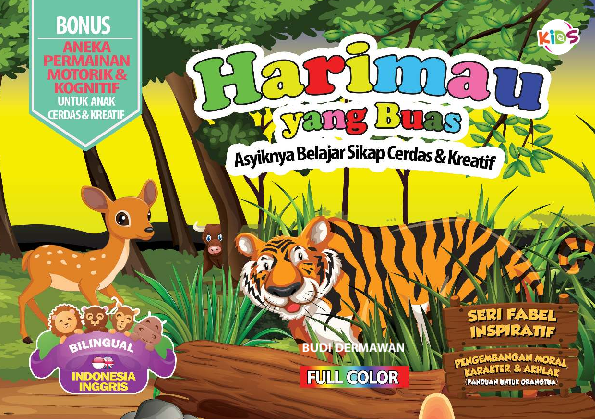 Sinopsis Buku: Di tengah hutan yang sebelumnya aman dan tenteram, datanglah seekor harimau buas yang mengacaukan ketenangan kehidupan binatang-binatang yang tinggal di sana. Kehadiran harimau membuat para penghuni hutan merasa takut dan tidak nyaman. Namun, di tengah kekhawatiran itu, ada satu binatang yang berani menentang kekuasaan harimau, yaitu seekor kancil. Kancil dikenal sangat cerdas dan kreatif, serta memiliki keberanian untuk menghadapi tantangan. Suatu hari, kancil melihat harimau membuat kekacauan di hutan. Ia merasa kasihan pada para penghuni hutan yang takut dan berlarian tanpa arah. Dengan kecerdasannya, kancil berpikir bagaimana cara menghadapi harimau itu. Ia pun mengajak harimau untuk bermain dengan cara yang sangat cerdik. Dengan menggunakan sumur tua sebagai alat, kancil berhasil memancing harimau untuk masuk dan akhirnya terjebak di dalamnya. Kancil, meskipun sebenarnya merasa sedih karena mengalahkan harimau, tetapi ia memahami bahwa itu adalah balasan yang setimpal atas perbuatan harimau yang mengganggu ketenangan hutan. Setelah itu, hutan kembali aman dan para penghuni hutan bisa hidup tenang kembali. Buku ini memberikan pesan moral bahwa bersikap cerdas dan kreatif dapat menyelamatkan seseorang dari situasi berbahaya. Cerita ini juga mengajarkan tentang pentingnya keberanian, kebijaksanaan, dan keadilan dalam menghadapi masalah.