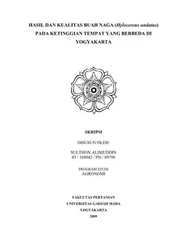 Hasil Dan Kualitas Buah Naga (Hylocereus Undatus) Pada Ketinggian Tempat Yang Berbeda Di Yogyakarta Sulthon Alimuddin Fakultas Pertanian UGM Konten Lokal Konten Lokal 31311