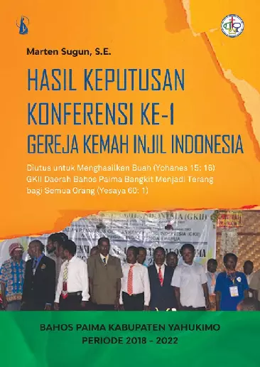 Buku ini menyajikan beberapa tema latar belakang Gereja Kemah Injil Indonesia hasil hasil konferensi peserta konferensi utusan dari seluruh jemaat daerah Bahos Paima yang di dalamnya ada enam jemaat delegasi pimpinan dari wilayah II Pegunungan Tengah Papua koordinator Yahukimo dan daerah Bahos Paima yang menggambarkan peserta konferensi Hasil konferensi ini memuat program kerja target pelayanan para pendeta untuk dijadikan pedoman selama satu periode lima tahun di daerah Bahos Paima aturan aturan yang dilarang gereja aturan aturan yang bisa dilaksanakan oleh umat dan atau para pelayan umat di daerah Bahos Paima sesuai AD dan ART GKII untuk dipatuhi dan dijalankan oleh semua warga Gereja Kemah Injil Indonesia Komisi komisi pembahasan dalam konferensi telah menetapkan program prioritas rekomendasi rekomendasi hasil komisi untuk dilaksanakan oleh enam jemaat daerah Bahos Paima selama satu periode berlangsung Masa kepemimpinan ketua daerah baru yang ditetapkan melalui Konferensi ke 1 di Bahos Paima yang di dalamnya terdapat program jangka pendek program jangka menengah dan program jangka Panjang serta persiapan menuju Konferensi ke 2 daerah Bahos Paima