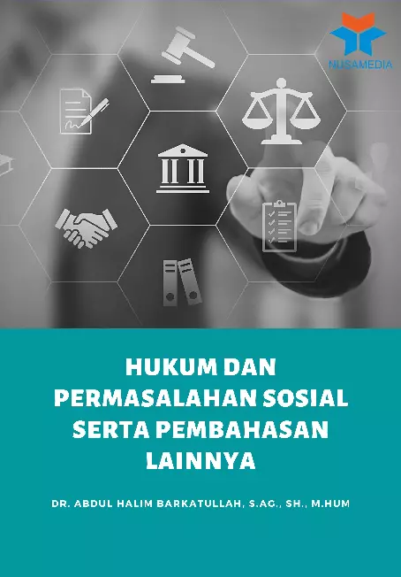 Hukum dan Permasalahan Sosial serta Pembahasan Lainnya Dr Abdul Halim Barkatullah S Ag SH M Hum Editor Dadang Abdulah S H M H LayOut Desain Sampul Tim Hikam Penerbit NUSAMEDIA Hak Cipta dilindungi Undang Undang All Rights Reserved Perpustakaan Nasional RI Katalog Dalam Terbitan KDT Hukum dan Permasalahan Sosial serta Pembahasan Lainnya Dr Abdul Halim Barkatullah S Ag SH M Hum Nusamedia Terbit Digital 2021 ISBN PDF Undang undang Republik Indonesia No 19 Tahun 2002 tentang Hak Cipta Pasal 72 1 Barangsiapa dengan sengaja atau tanpa hak melakukan perbuatan sebagaimana dimaksud dalam pasal 2 ayat 1 atau pasal 49 ayat 1 dan ayat 2 dipidana dengan penjara masing masing paling singkat 1 satu bulan dan atau denda paling sedikit Rp1 000 000 satu juta rupiah atau pidana penjara paling lama 7 tujuh tahun dan atau denda paling banyak Rp5 000 000 000 lima milyar rupiah 2 Barangsiapa dengan sengaja menyiarkan memamerkan mengedarkan atau menjual kepada umum sua tu ciptaan atau barang hasil pelanggaran hak cipta atau hak terkait sebagaimana dimaksud pada ayat 1 dipidana dengan pidana penjara paling lama 5 tahun dan atau denda yang banyak Rp500 000 000 lima ratus juta rupiah ii