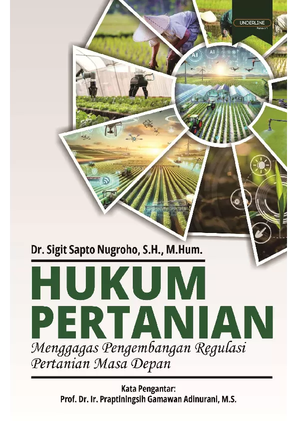 Buku ini penulis persembahkan untuk yang terpelajar Prof Dr Ir Praptiningsih Gamawan Adinurani M S selaku guru besar Fakultas Pertanian Universitas Merdeka Madiun yang pada tahun ini beliau memasuki masa purna bakti di Fakultas Pertanian Universitas Merdeka Madiun Beliau telah banyak memberikan kontribusi keilmuan bidang ilmu pertanian kepakaran beliau tidak diragukan lagi yang juga merupakan asset yang sangat ternilai Terbitnya karya literasi ini hanyalah setitik tetesan embun untuk penulis persembahkan sebagai untaian konsep pemikiran penulis dalam memberikan kontribusi berbasis literasi terutama dari bidang keilmuan penulis yaitu ilmu pengetahuan hukum yang dikolaborasikan dengan bidang hukum pertanian yang gagasan ini mungkin masih sangat dangkal dan awam dikalangan para penstudi hukum dan para penstudi bidang pertanian Dengan harapan penulis dapat memberikan pencerahan dan mungkin gagasan ini dapat untuk didealetikan atau didiskursuskan dalam wacana ilmiah yang lebih komp