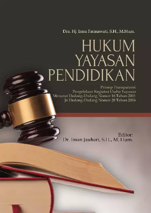 Yayasan sebagai suatu lembaga yang diakui secara resmi sebagai suatu badan hukum yang dapat menyelenggarakan sendiri kegiatannya dengan harta kekayaan yang terpisah dan berdiri sendiri Kegiatan yang diselenggarakan para pendiri yayasan lebih cenderung mengembang yayasan ke dunia usaha pendidikan karena pendidikan merupakan tonggak kehidupan masyarakat menuju ke depan dan tidak berlaku surut Bahkan semakin banyak manusia membutuhkan pendidikan sehingga yayasan yang berstatus pendidikan oleh pemerintah mendorong peningkatannya dengan menyalurkan bantuan dana untuk meningkatkan mutu kualitas pendidikan Buku ini terdiri atas tiga bab dan masing masing bab dibagi dalam sub sub bab Bab I membahas pendahuluan Bab II tentang Prinsip Transparansi dalam Pengelolaan Kegiatan Usaha Yayasan Menurut Undang Undang Nomor 16 Tahun 200 Jo Undang Undang Nomor 28 Tahun 2004 Sedangkan bab III menguraikan tentang Peranan dan Fungsi Pengurus dalam Pengelolaan Kegiatan Usaha Yayasan Menurut Undang Undang Yayasan Buku ini diperuntukkan bagi mahasiswa fakultas hukum yang mendalami bidang Ilmu Hukum khususnya Hukum Yayasan Pendidikan Sebab yayasan dalam menjalankan kegiatannya bersifat sosial keagamaan dan kemanusiaan Kemudian buku ini juga sangat bermanfaat bagi para pengelola kegiatan usaha yayasan pendidikan