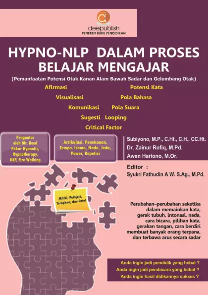 Sinopsis Buku: Buku ini membahas metode pendidikan dan pengajaran yang inovatif, yaitu *Hypno-NLP dalam Proses Belajar Mengajar*. Metode ini mengintegrasikan pemanfaatan potensi otak kanan, potensi pikiran alam bawah sadar, dan gelombang otak untuk meningkatkan efektivitas proses belajar mengajar. Buku ini menjelaskan bagaimana guru dapat memanfaatkan potensi-potensi tersebut untuk meningkatkan kreativitas, motivasi, dan kinerja siswa dalam pembelajaran. Selain itu, buku ini juga membahas berbagai aspek dalam pendidikan, seperti metode Pembelajaran Berbasis Masalah (PBM), evaluasi, bimbingan konseling, serta peran guru dalam menciptakan lingkungan belajar yang optimal. Buku ini juga memuat studi kasus dan contoh tokoh-tokoh sukses yang berhasil memanfaatkan potensi otak kanan, pikiran bawah sadar, dan gelombang otak dalam mencapai tujuan hidup mereka. Buku ini ditujukan bagi para guru, pendidik, dan calon pendidik yang ingin meningkatkan kemampuan mereka dalam mengajar dengan pendekatan yang lebih holistik, kreatif, dan berbasis potensi manusia. Dengan memahami dan menerapkan metode ini, pengajar dapat menjadi lebih efektif dalam merangsang potensi siswa dan meningkatkan kualitas pembelajaran.
