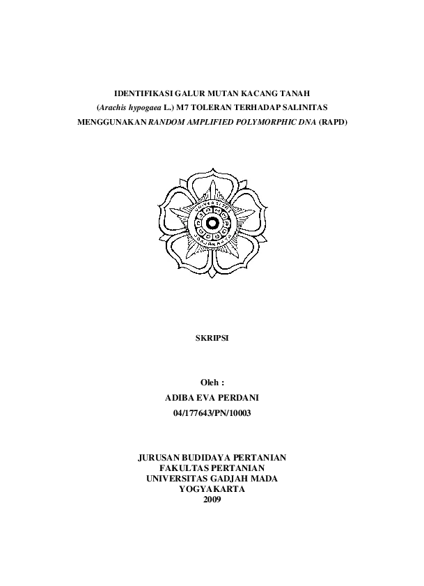 Identifikasi Galur Mutan Kacang Tanah (Arachis Hypogaea L.) M7 Toleran Terhadap Salintas Menggunakan Random Amplified Polymorphic Dna (Rapd) Adiba Eva Perdani Fakultas Pertanian UGM Konten Lokal Konten Lokal 31153