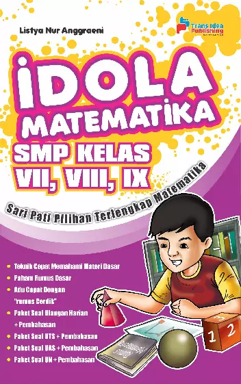 Sinopsis Singkat Buku "Idola Matematika" untuk Cover Belakang Buku: Buku *Idola Matematika* merupakan buku tambahan pelajaran Matematika yang ditujukan bagi siswa SMP kelas VII, VIII, dan IX. Buku ini dirancang untuk membantu siswa dalam memahami dan menguasai materi Matematika secara lebih efektif dan menyenangkan. Setiap bab dalam buku ini berisi ringkasan materi yang disusun secara sistematis, disertai soal-soal latihan dan pembahasan yang jelas. Selain itu, buku ini juga dilengkapi dengan latihan ujian semester gasal dan semester akhir (genap) untuk setiap kelas, serta simulasi Ujian Nasional sebagai sarana latihan untuk menghadapi ujian nasional. Penulis juga menyajikan beberapa rumus cerdik yang memudahkan siswa dalam membandingkan penyelesaian masalah dengan cara biasa dan cara cerdik. Dengan struktur yang terorganisir dan penjelasan yang jelas, buku ini diharapkan dapat menjadi panduan yang bermanfaat bagi siswa dalam mempersiapkan diri menghadapi berbagai jenis ujian.