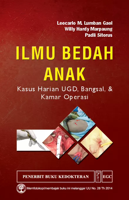 Ilmu Bedah Anak Kasus Harian UGD Bangsal Kamar Operasi ditulis berdasarkan pengalaman dan catatan harian yang ditemui oleh para penulis di klinik dan rumah sakit Kasus kasus yang biasa ditemui maupun yang jarang dirangkai dalam rangkaian bab yang mempermudah pembaca untuk lebih memahami Ilmu Bedah Anak dalam praktik sehari hari Buku ini diharapkan membuka wawasan dan pengetahuan praktis para mahasiswa kedokteran dan sejawat dokter umum tentang Ilmu Bedah Anak sehingga dapat mendeteksi mendiagnosis melakukan tindakan atau merujuknya dengan cepat apabila menemukan kasus bedah anak Sejawat dokter bedah umum dan juga para ahli bedah anak diharapkan mendapatkan tambahan referensi yang berguna dari buku ini ketika menghadapi berbagai masalah di lapangan selaian buku buku teks bedah anak lainnya