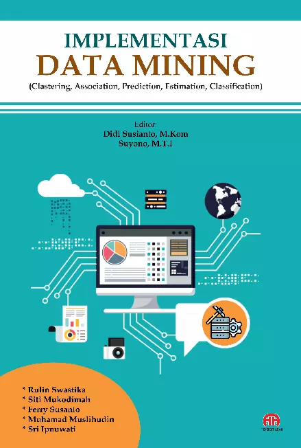 Sinopsis Buku: Buku *Implementasi Data Mining (Clustering, Association, Prediction, Estimation, Classification)* ini menyajikan konsep dasar dan aplikasi praktis dalam teknik data mining. Buku ini mencakup berbagai topik penting seperti konsep dasar data mining, proses data mining, tools data mining, serta konsep pra pemrosesan data (data preprocessing). Selain itu, buku ini juga menjelaskan secara rinci tentang algoritma clustering, estimation, classification, dan prediction, lengkap dengan contoh studi kasus yang diambil dari berbagai riset dan penelitian terkini. Buku ini sangat cocok sebagai referensi bagi dosen, praktisi, maupun mahasiswa yang ingin memahami dan menerapkan teknik data mining dalam berbagai bidang ilmu. Dengan penyajian yang jelas dan terstruktur, buku ini bertujuan memberikan panduan praktis untuk memahami dan mengimplementasikan berbagai metode data mining secara efektif.