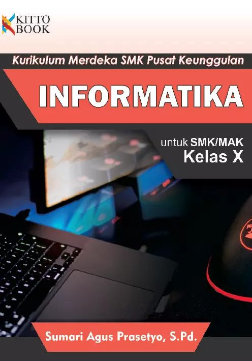 Sinopsis Buku: Buku *Informatika untuk SMK/MAK Kelas X* ini dirancang sebagai panduan belajar dan praktik bagi siswa Sekolah Menengah Kejuruan (SMK) dalam memahami konsep dasar informatika sesuai dengan Kurikulum Pusat Keunggulan. Buku ini mencakup berbagai topik penting, seperti berpikir komputasional, logika proposisional, pemecahan masalah, serta penerapan teknologi seperti aplikasi pengolah angka, presentasi, printer, scanner, dan fotografi/videografi. Buku ini juga memperkenalkan konsep-konsep dasar sistem komputer, termasuk komponen-komponen utama, serta konsep-konsep logika seperti proposisi, negasi, konjungsi, disjungsi, implikasi, dan inferensi. Selain itu, buku ini menjelaskan cara memanfaatkan bilangan biner dan heksadesimal dalam pemrograman dan pemecahan masalah komputasional. Dalam bab-babnya, buku ini menyediakan rangkuman materi, latihan soal, dan peta konsep untuk memudahkan pemahaman siswa. Buku ini tidak hanya mendukung pembelajaran di sekolah, tetapi juga dapat digunakan sebagai bahan belajar mandiri di rumah. Dengan penjelasan yang jelas dan terstruktur, buku ini bertujuan untuk meningkatkan kemampuan berpikir komputasional, keterampilan berbahasa, serta penguasaan teknologi yang relevan dengan kebutuhan dunia kerja.